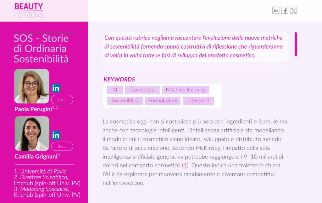 Artificial Intelligence and Sustainability: we explored this topic in the latest issue of Beauty Horizon, with an in-depth article dedicated to the impact of smart technologies on the cosmetic value chain.